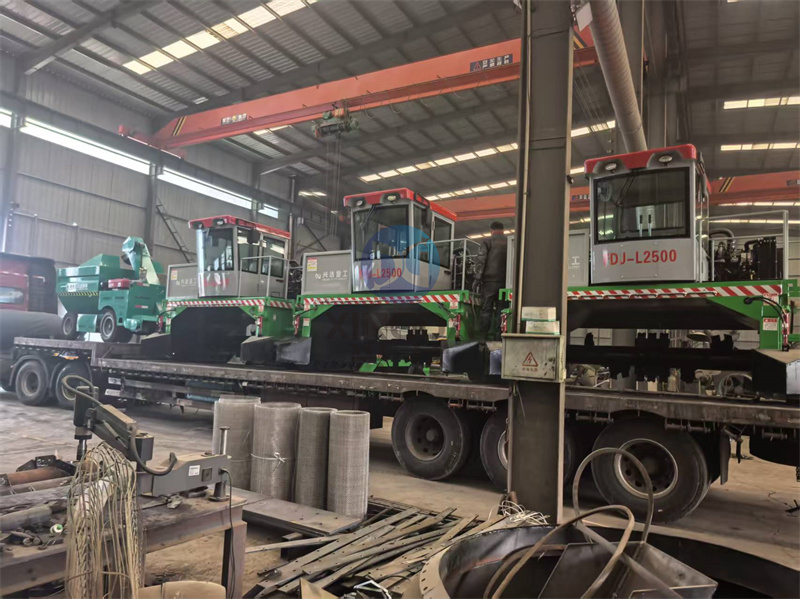 第二车:耒阳用户定制的有机肥履带翻抛设备正在装车:有机肥履带翻堆机是一种专门用于处理和翻动有机肥料的机械设备,其主要功能是通过履带驱动系统,将堆积的有机肥料进行翻动、搅拌,以促进其发酵过程。这种设备通常配备有搅拌装置,能够均匀地混合有机物料,提高发酵效率,减少臭气排放。此外,履带式设计使其能够在各种地形条件下灵活移动,适用于大规模农场和有机肥料生产厂。有机肥履带翻堆机不仅提高了工作效率,还减少了人工劳动强度,是现代农业中不可或缺的重要设备之一。